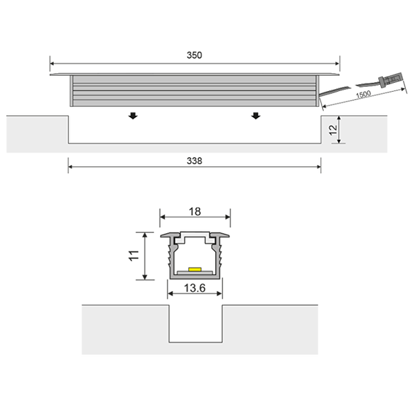 Power: 2.5WColour Temperature: 4000КRated Luminous Flux: 160 lmVoltage: 12V DCType: dimmableExternal dimensions: L 350 mm, W 18 mm, H 11 mmIndex of protection: IP20